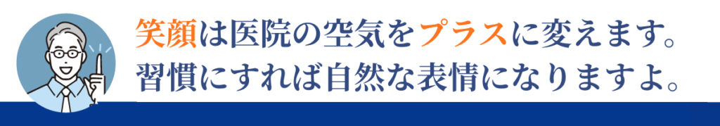 医療現場では患者対応が続くため、無意識に無表情になることがあります。しかし患者から見れば、それが医院の印象になります。
