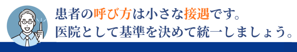 患者の呼び方は、小さなことのようで医院の印象を左右します。