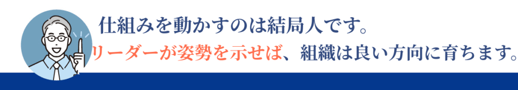 どんなに制度を整えても、リーダー自身が数字に追われて感情的になったり、根拠のない判断を下したりすれば、スタッフはついてきません。論理的思考や健全な目標管理を組織に根付かせるには、リーダーがまず実践者になることが必要です。