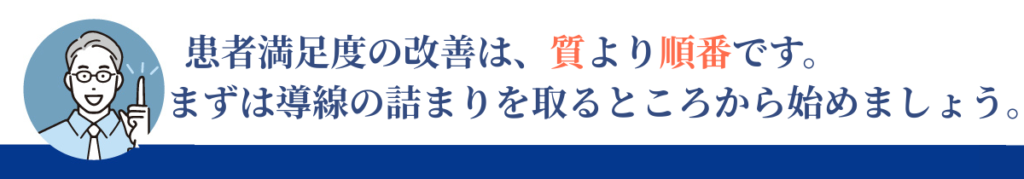 導線が詰まっている状態で、説明を丁寧にしたり、声かけを増やしたりしても、満足度は思ったほど上がりません。理由は、患者さんの意識が不安や混乱に向いているからです。