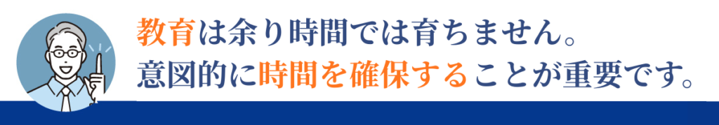 しかし一方で、教育が後回しになり、結果として人材が育たないという問題も多く見られます。結論として、教育は“余った時間でやるもの”ではなく、“意図的に確保するもの”です。