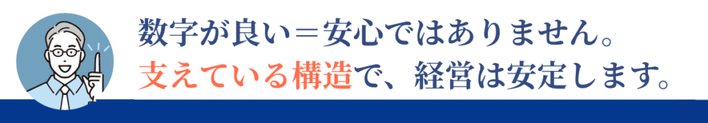 経営の安定とは、数字の良し悪しではなく、数字が多少揺れても耐えられる構造があるかどうかです。今の数字を守ることよりも、数字に振り回されない経営を設計できているか。それが、本当の意味での安定を決めます。
