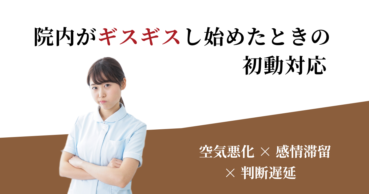 普段は大きなトラブルもなく、表面上は落ち着いている。それなのに、ある日突然、不満や怒りが一気に噴き出す——多くの医院で見られる現象です。 「そんなに不満があったとは思わなかった」と院長が驚く一方、現場では「ずっと我慢してきた」という声が上がります。問題は、その不満が突然生まれたわけではないことです。小さな違和感や不公平… -