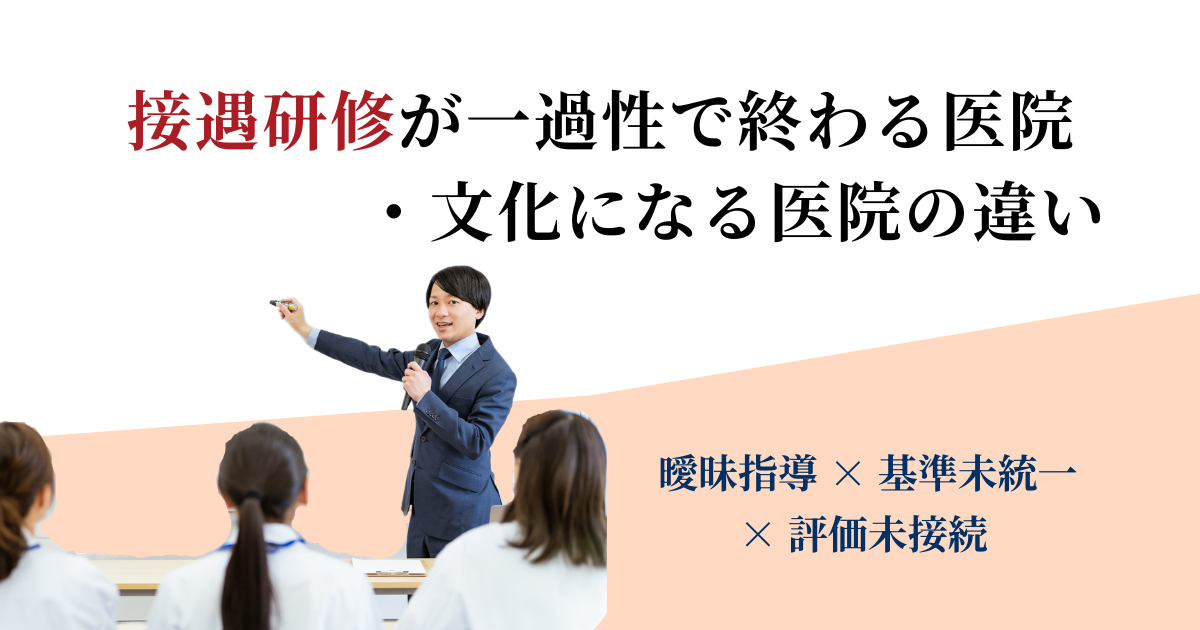 本記事は、接遇研修が「その場限り」で終わる医院と、文化として定着する医院の違いを整理するものです。 多くの医院が接遇研修を実施しますが、数か月後には元に戻っているケースも少なくありません。問題は研修内容の質だけではありません。むしろ、その後の“設計”に差があります。 文化になる医院は、研修をイベントとして扱いません。研… -