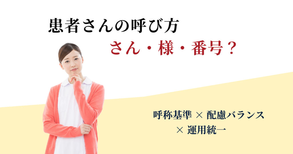本記事は、患者の呼び方について整理するものです。 診療現場では「〇〇さん」「〇〇様」「番号呼び」など、医院によって呼び方が異なります。どれが正解という単純な問題ではありませんが、呼び方は医院の印象を左右する重要な接遇要素です。患者は名前を呼ばれる瞬間に「大切に扱われているか」を感じます。一方で、プライバシーへの配慮も… -