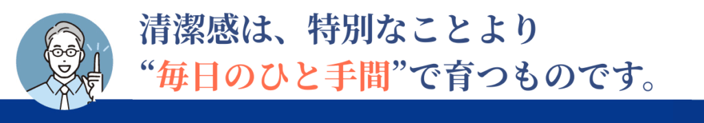 清潔感は、一度大掃除をして終わりではなく、毎日の小さなひと手間で維持されます。誰が見ても同じ水準を保てるよう、ルールとして決めておくことが重要です。