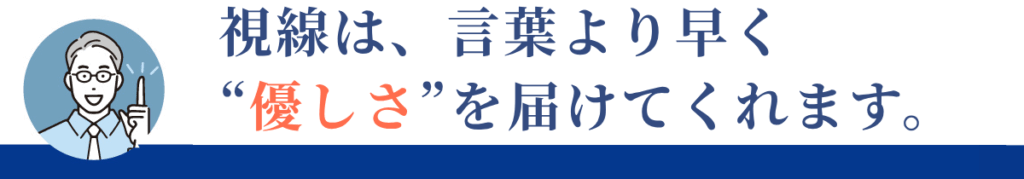 今回は、視線で“優しさ”を伝える技術をお伝えします。