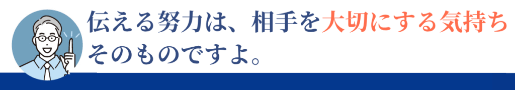 聞き返すことが恥ずかしい、迷惑をかけたくないという思いから、分かったふりをしてしまうケースもあります。だからこそ受け手の立場を汲み取ったコミュニケーションが求められます。