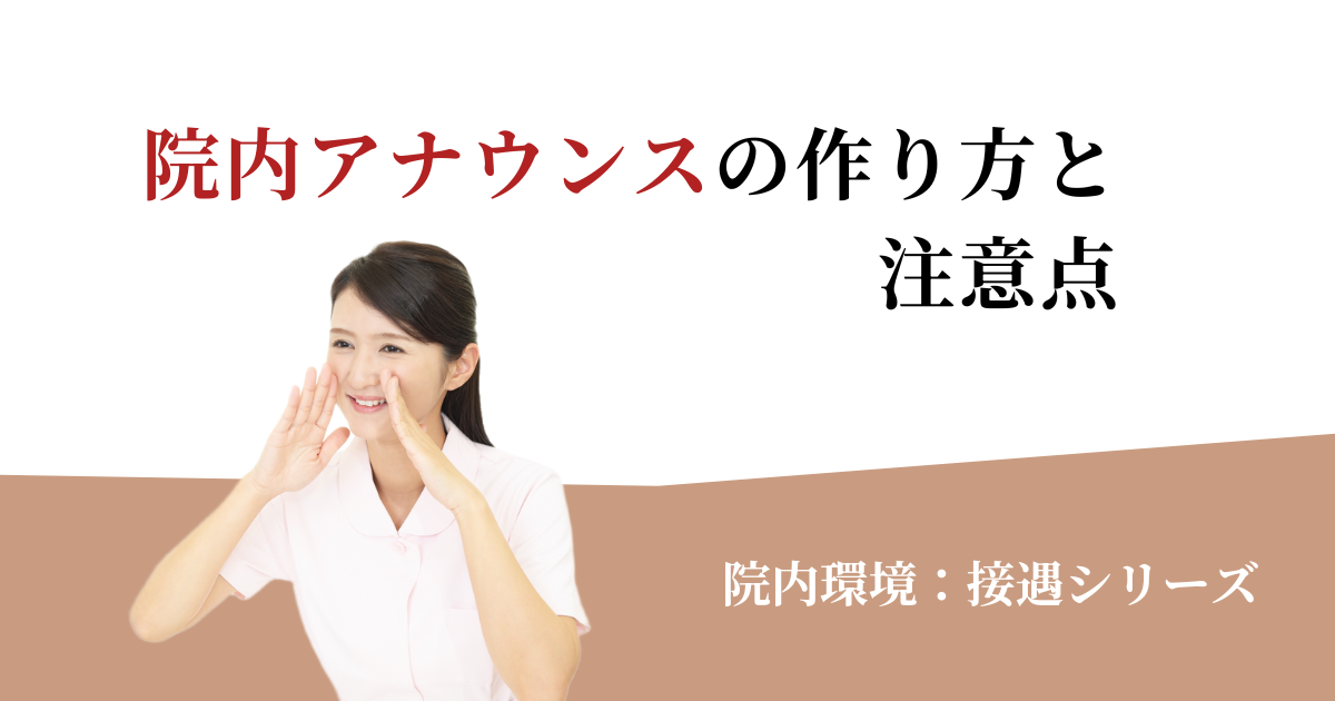 院内アナウンスは、ただ情報を伝えるだけでなく「医院の雰囲気」や「スタッフの丁寧さ」までもが患者さんに伝わる、大切な接遇要素です。