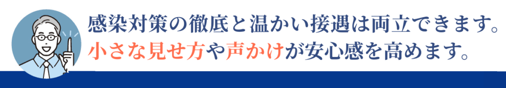 感染症対策と接遇は相反するもののように見えますが、実際にはどちらも患者様の安心をつくるための取り組みです。