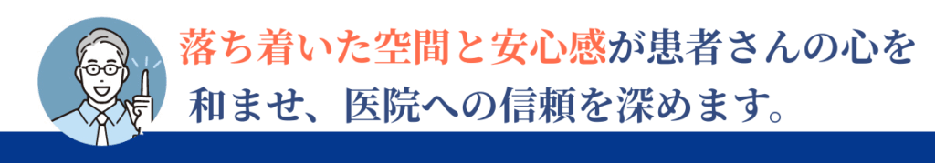 医院においても、患者さんは診療の技術だけでなく「ここなら安心して通える」という感覚を求めています。その感覚を生み出すのは、医院全体の空間や雰囲気にほかなりません。