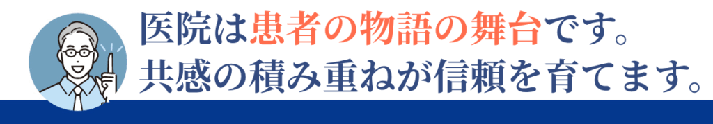 例えば「痛い治療を乗り越えられた」という体験が「安心して通える医院だった」という物語に変われば、その患者さんにとって医院は単なる医療提供の場ではなく「信頼できる存在」として記憶されます。
