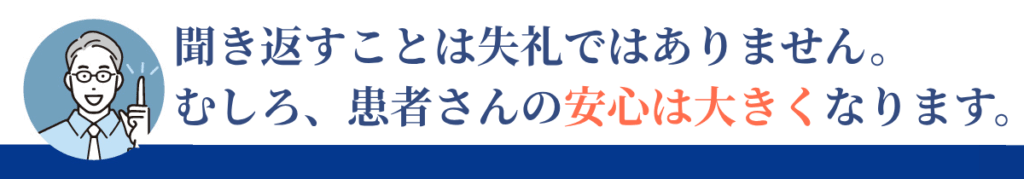 患者さんの情報を正確に受け取ることは、医院全体の安全に直結しています。スタッフが聞き返すことをためらうと、ミスが増えてしまいます。