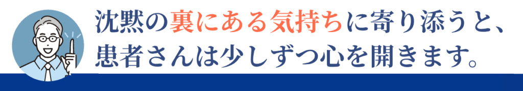 多くを語らない患者さんは、さまざまな心理背景から慎重になっていることが多く、決して非協力的なわけではありません。