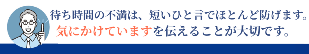 声かけと気配りの積み重ねで、待ち時間への不満は大幅に減少します。