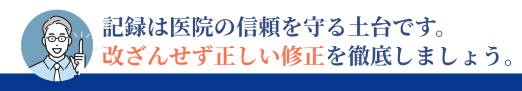 また、修正方法や記録の書き方を標準化し、スタッフ教育で徹底することも不可欠です。さらに、外部監査や第三者認証を取り入れることで、潜在的なリスクを早期に発見できます。記録管理は患者を守るだけでなく、医院経営を守る基盤でもあります。