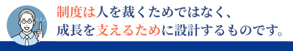しかし評価制度は、不満を抑えるための装置ではありません。成長を支援する仕組みです。