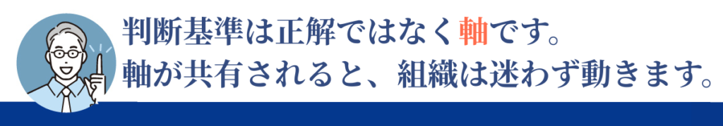 暗黙の了解に頼る限り、組織は個人の経験値を超えられません。判断基準を言語化することは、経験を組織の資産に変える作業です。