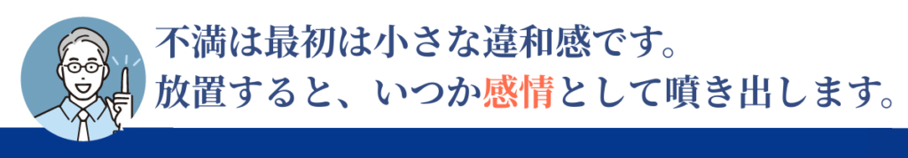 不満を我慢で抑え込むと、最後は必ず感情として噴き出します。そうなる前に、違和感を言葉にできる場を用意すること。小出しで扱える仕組みを持つこと。