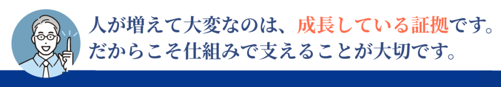 人数増加を「不安」ではなく「チャンス」に変えるために、組織づくりに本腰を入れる価値は十分にあります。