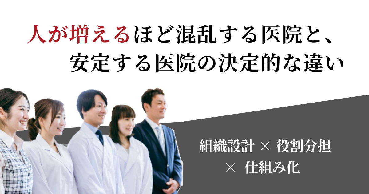 属人化を減らし、役割と責任を明確にし、構造で運営できている医院ほど、人数増加を成長につなげることができます。混乱は偶然ではなく、設計不足の結果です。