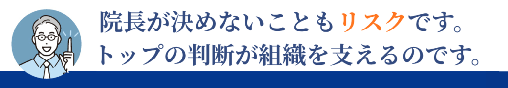 院長が決めない状態では、責任の所在も曖昧になります。