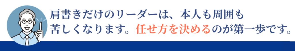 名ばかりリーダーが生まれる最大の原因は、「何を任せるのか」「どこまで任せるのか」を決めていない点にあります。役職を与える=任せた、ではありません。