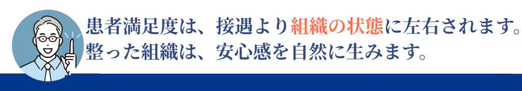 患者満足度は、努力の量で引き上げるものではありません。組織の整い具合が、そのまま患者体験に反映される指標です。