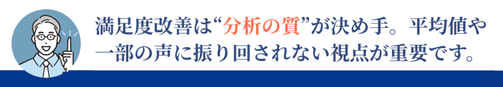 平均値は“表面的な良さ”しか映しません。満足度改善には、平均ではなく“分布”と“偏り”の確認が不可欠です。