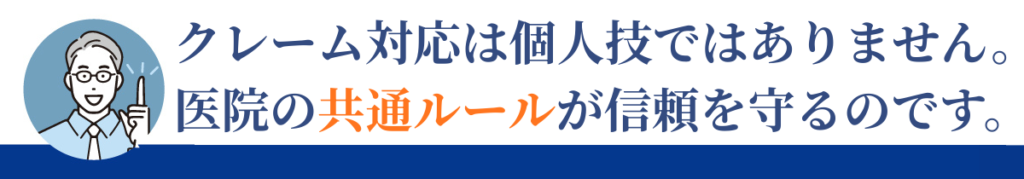 本記事は、医院全体で共有しておくべきクレーム対応の「共通ルール」を整理するものです。