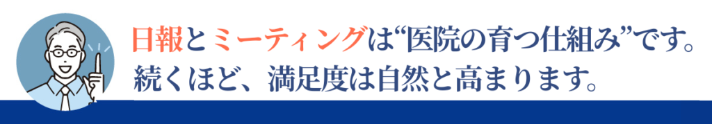 日報とミーティングは、医院全体の満足度を底上げするための最も強力な仕組みです。