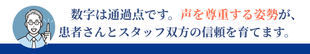 従業員のやりがいと患者の安心感、この二つを同時に高める仕組みを持つことが、これからの医院経営の大きな差となるでしょう。