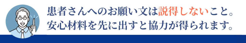 本記事は、患者さんに嫌がられず、自然に協力してもらえる「お願い文」の作り方を整理します。