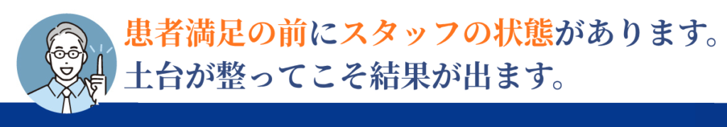 患者満足度を改善するためには、患者を見るだけでは不十分です。その前提として、スタッフの状態を整えることが不可欠です。スタッフ満足は、患者満足の“土台”です。
