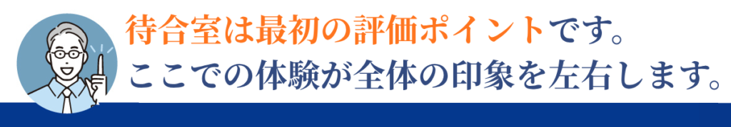 待合室は単なる待機スペースではなく、患者体験の出発点です。この段階で不安やストレスが生まれてしまうと、その後どれだけ良い診療や説明をしても、満足度は伸びにくくなります。