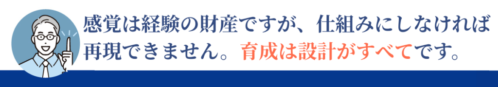 基準を言語化することは、厳しくすることではありません。むしろ育成を安定させるための土台です。感覚を仕組みに変えたとき、育成は再現性を持ちます。