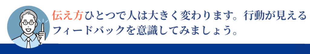 行動に落とし込まれたフィードバックは、本人の脳が「すぐできる」と判断しやすく、改善スピードが一気に上がります。
