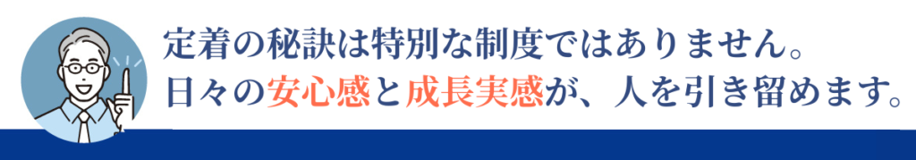 成長の実感は、働き続ける理由になります。「ここにいれば前に進める」と感じられることが重要です。