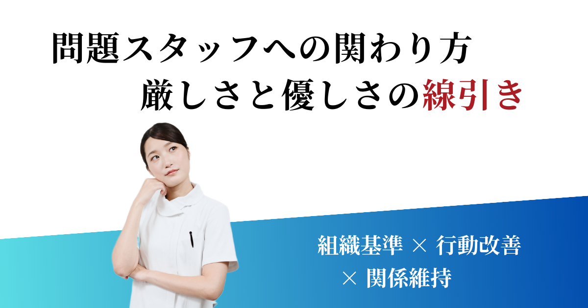 どんな医院にも、「態度が不安定」「指示に従わない」「チームの空気を乱す」など、関わり方が難しいスタッフが一定数存在します。しかし、感情的に叱るだけでは改善せず、優しさだけでも組織が緩んでしまいます。