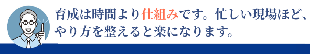 本記事では、忙しい現場でも無理なく実践でき、育成効果を落とさない「時短育成」の考え方と具体策を解説します。