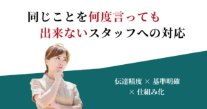 これらは基本的なことですが、曖昧なままだと人によって解釈が変わります。「できていない」ではなく、「教えていない」状態にならないようにすることが重要です。基準は明確に伝える必要があります。
