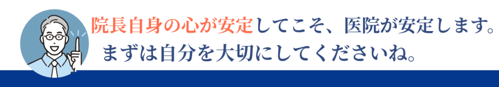 院長が自分を整えられることは、スタッフ・患者・組織すべてにとって最大の安心につながります。