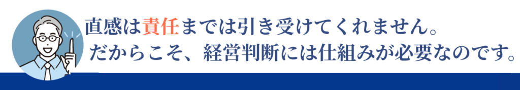 設備投資や外注の判断を「なんとなく良さそう」「流行っているから」という直感で行うと、後から経営を圧迫する原因になります。投資判断は一度実行すると簡単には引き返せず、固定費として長期間影響を及ぼします。直感だけでは、費用対効果や回収見込みを正確に捉えることができません。