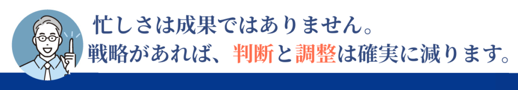 忙しい状態が続いているなら、それは努力が足りないサインではなく、戦略を言語化すべきタイミングです。