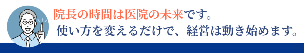 忙しさが続いているなら、それは能力不足ではなく、時間配分を見直すべきサインです。院長の時間の使い方を変えることが、医院経営を次の段階へ進める起点になります。
