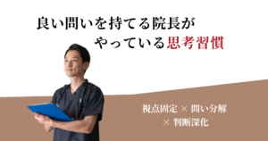 良い問いは、自然と考える深さを引き上げます。一方、表面的な問いは、表面的な答えしか生みません。「売上を上げるにはどうするか」という問いと、「どの患者層で、どの診療が利益構造を支えているか」という問いでは、思考の深さがまったく異なります。
