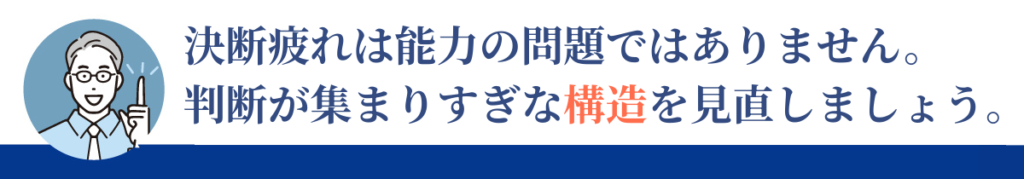 全部決める経営は、一時的には回りますが、長期的には必ず限界を迎えます。決断疲れは、経営スタイルの限界サインでもあります。