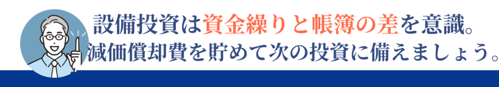 また、将来的な更新投資に備えるためには「減価償却費相当額を内部留保する」という考え方も重要です。帳簿上の費用である減価償却費を実際の資金として確保しておくことで、次の設備投資をスムーズに行うことができます。